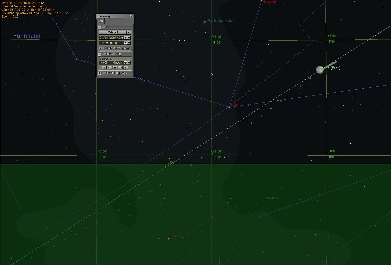 Mondverteilung über 120 Jahre am selben Kelt. Tag TIOCOBREX...1. Tag vor der Nordostwendung